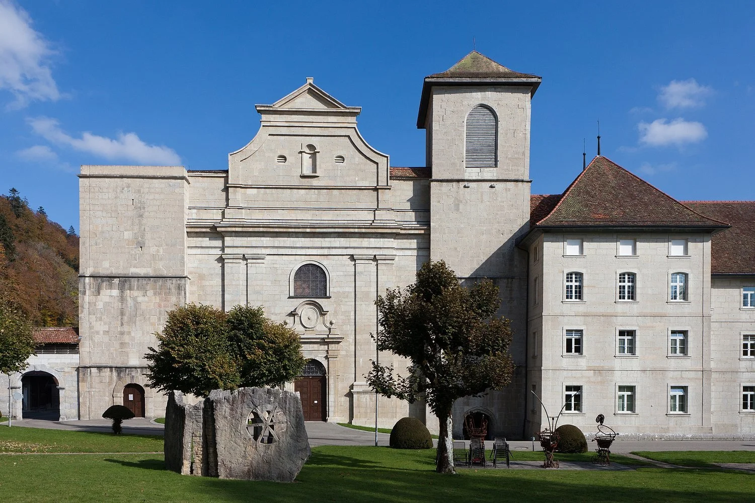 According to local legend, the Abbey of Bellelay was established in 1136 when Sigingand, the provost of Moutier-Grandval, became lost in the deep woods of the High Jura region while hunting a wild boar. Unable to find his way out of the forest, he vowed to establish a monastery if he returned home safely. Four days later, he emerged from the woods. Keeping true to his vow he built the monastery, naming it “belle laie”, as “laie” was the local word for female boar.