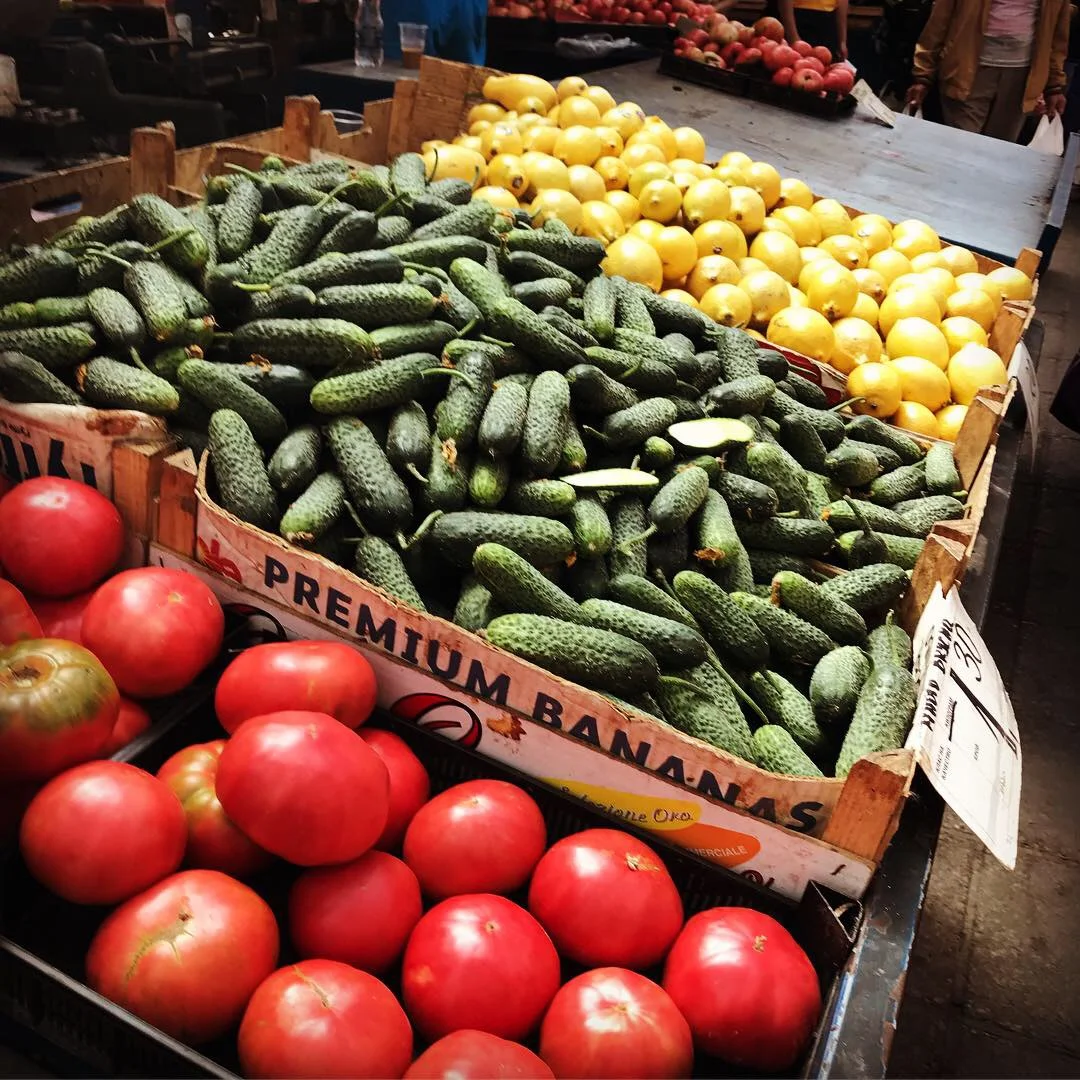 The center of the market is all food and offers countless options. One kiosk features nearly 40 varieties of olives, gleaming with oil and studded with fresh herbs. The next presents the buyer with dozens of different types of fish, all fresh and packed on ice. One cart sells impossibly huge leeks and mushrooms, the next complements the assortment with bell peppers, cucumbers, and the greatest tomatoes I’ve ever had. (Seriously. I ate dozens of tomatoes in the few days I was there. They were incredible.)